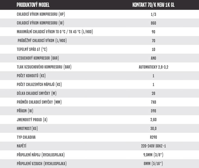 CELKOVÁ KOMPAKTNOST – Chladiče řady KONTAKT mají nejlepší poměr výkonu, rozměrů a ceny na trhu. Celková robustnost modelu nenechá nikoho na pochybách, že je to pracant, který si hravě poradí se společností několika desítek žíznivých krků.